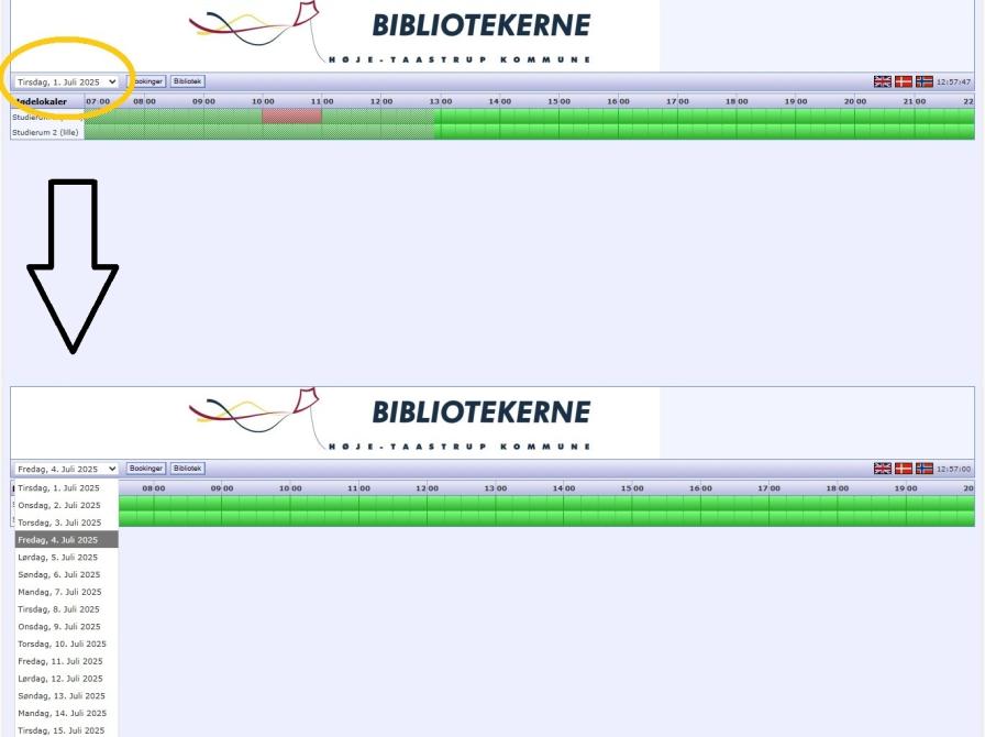 Da vi skal booke et par dage ud i fremtiden, trykker vi på datoen oppe i venstre hjørne og vælger fredag.